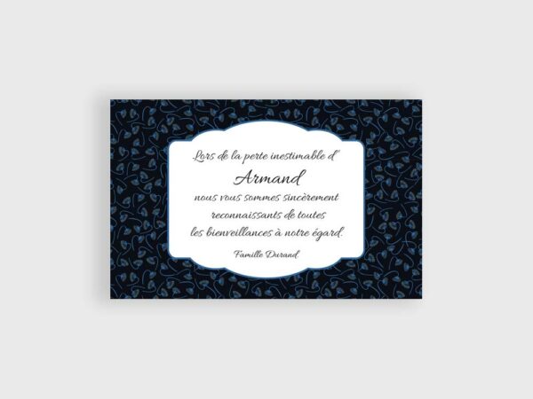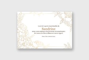 Cette carte de remerciement décès est dans un esprit moderne et doré.